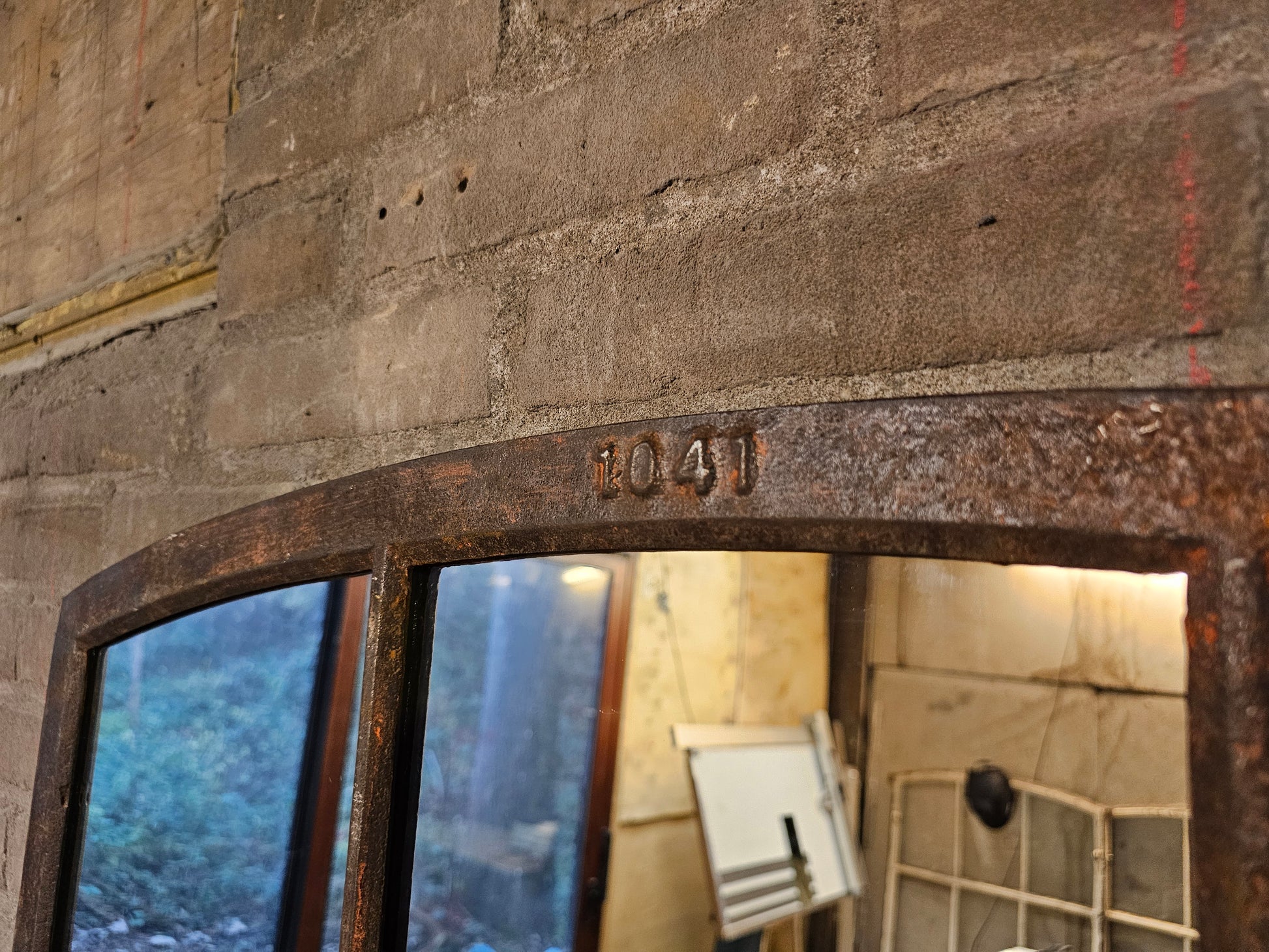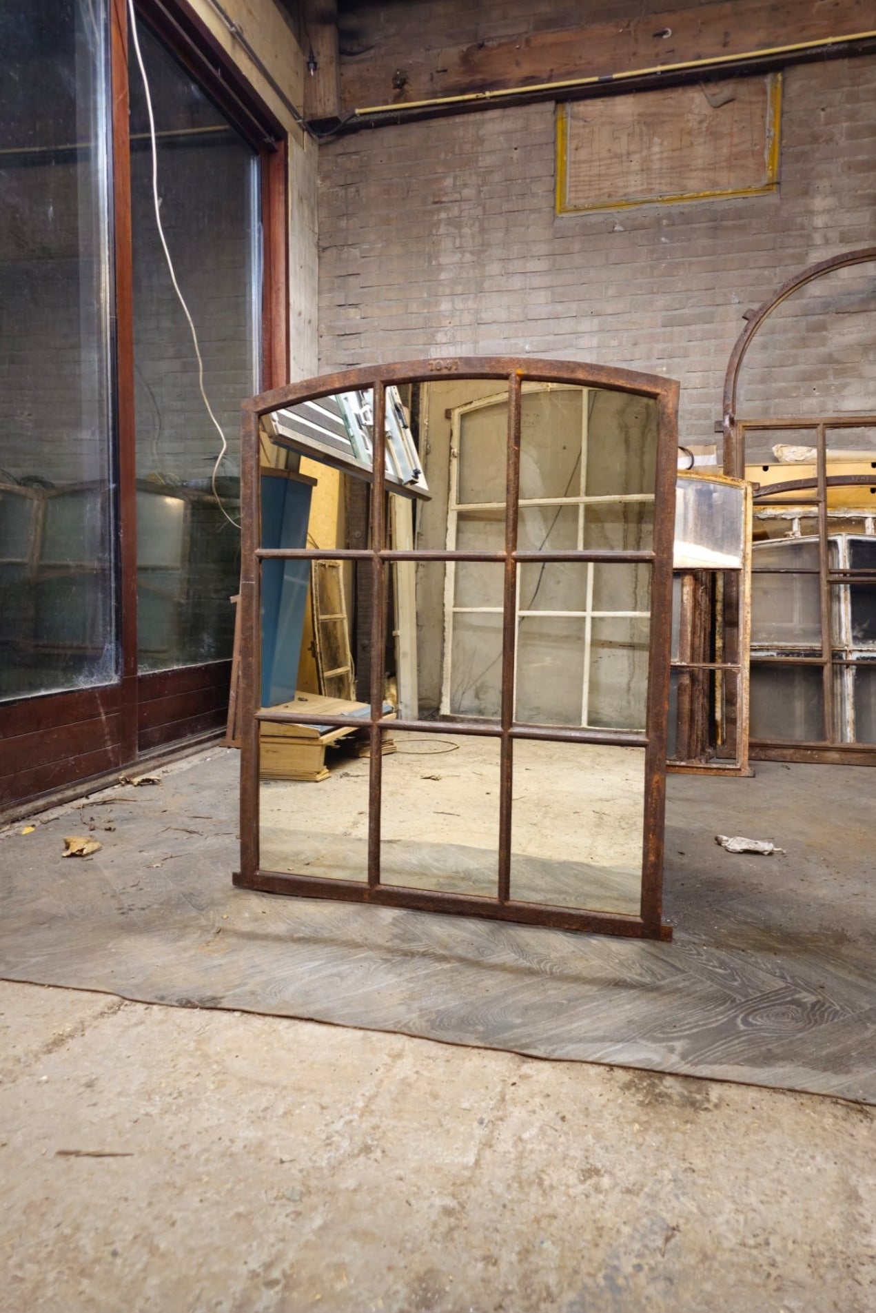 Materiaal: authentiek gietijzeren raam van zware kwaliteit, opnieuw verwerkt tot spiegel